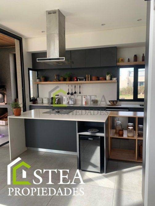 - Cocina con 7m lineales de mesada silestone blanca, bajo mesada completo y alacenas. Isla de 2x1 con anafe eléctrico y campana. barra de apoyo de madera enchapada de 2x 0,5. Box de horno, micro, heladera y cajonera.