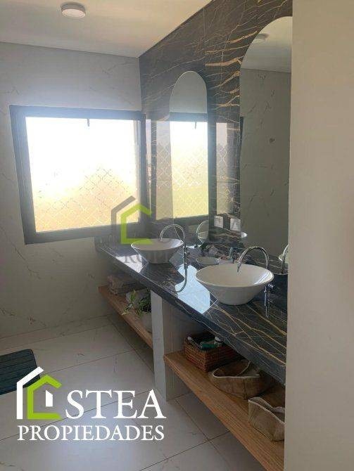 -Baño con doble bacha, box de ducha y espacio cerrado de inodoro y bidét.