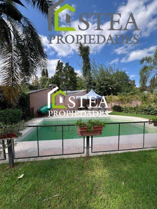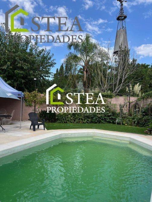 EXTERIORES: Gran parque verde con piscina Quincho completo con parrilla, dormitorio y baño completoCochera pasante para 2 autos