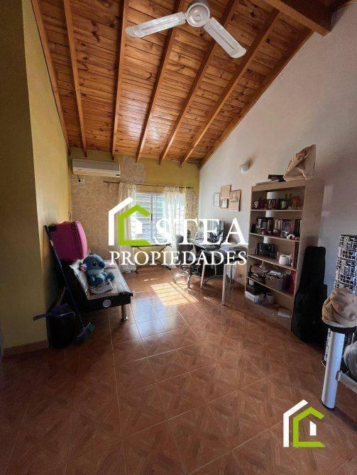 En Exterior: Jardín al frente. Galería cubierta. Cochera cubierta para dos autos con portón elevadizo, brindando seguridad y comodidad. Quincho completo con parrilla, el espacio ideal para celebrar con amigos y familiares. Galpón de guardado con toilette, sumando funcionalidad. Piscina de 6x3 aprox. con bomba y filtro, para disfrutar de los días de calor. Fondo libre con amplio jardín, un espacio verde para el esparcimiento y el relax.