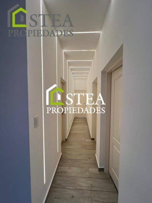 Dos dormitorios amplios, luminosos, con placares empotrados. Suite principal con vestidor y baño completo. Baño completo adicional. Cocina, comedor y living integrados con excelente circulación de luz natural. Muebles de alacena y bajo mesada. Dos arañas de categoría en living y cocina. Hogar a leña marca Tromen en el living. Cortinas y equipos de aire acondicionado instalados en todos los ambientes. Cochera techada para tres autos. Galería con parrilla y toilette exterior. Ducha exterior. Piscina con cascada y asientos perimetrales. Sistema de riego automático. Jardín completamente parquizado. Iluminacion led en todos los ambientes.